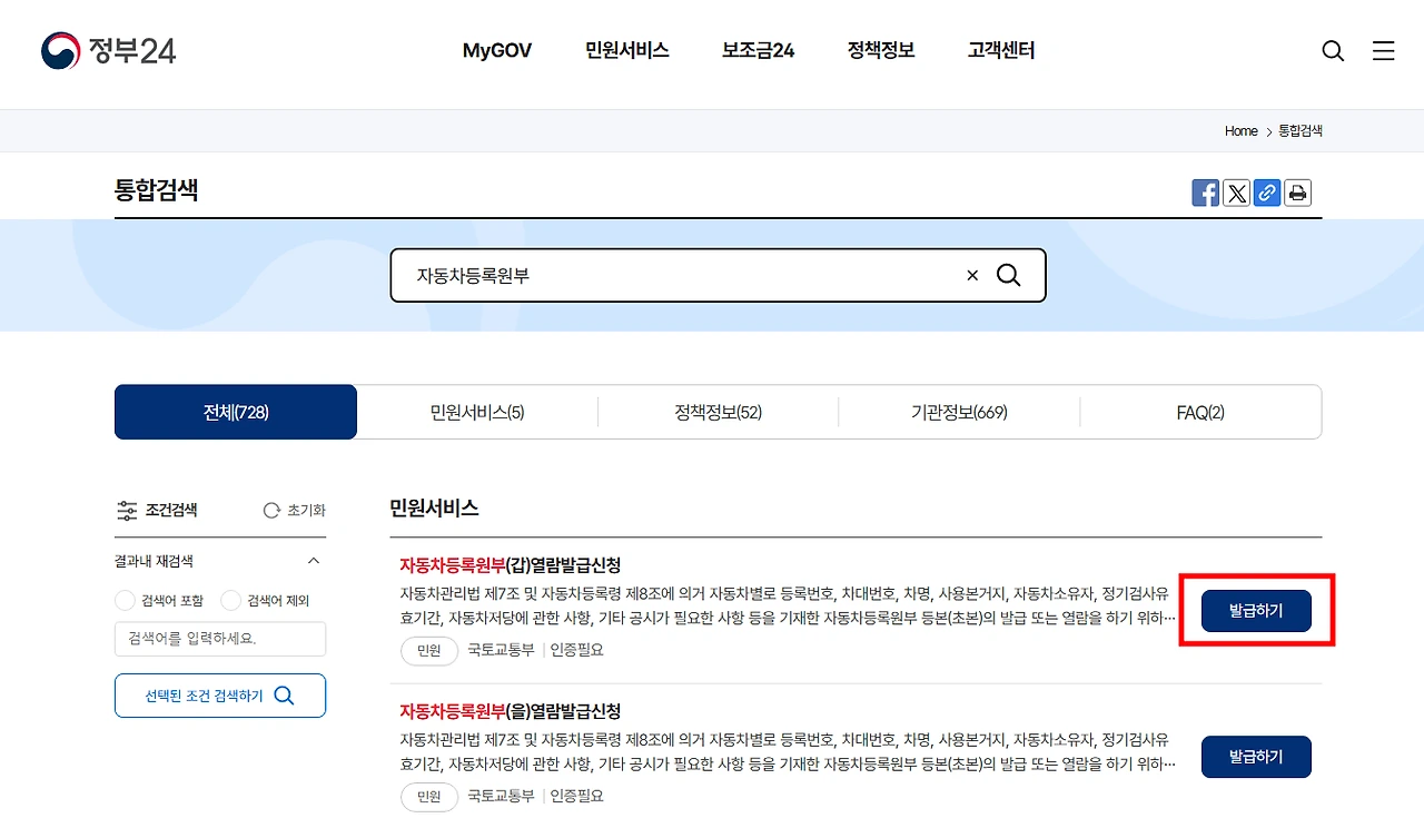 - 정부24에서 자동차등록원부 발급받는 방법은?