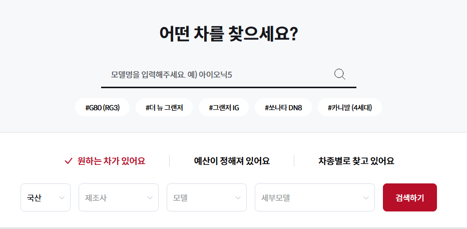 - 홈페이지 또는 앱 접속 후 차량 모델명 입력